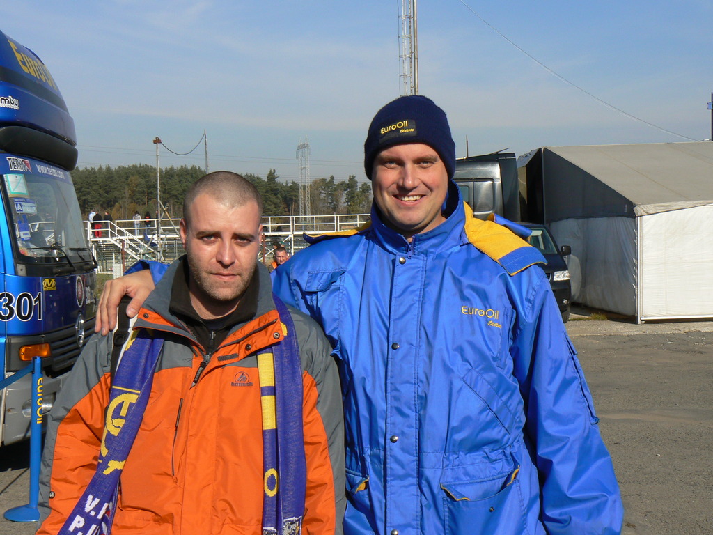 Zhruba 14 dní před Sosnovou mi zavolal Vašek Pech sen. Telefonát se týkal našich fanstránek a když jsme náš hovor končili, tak mi jako by mimochodem nabídl, že by nás chtěli jako poděkování za odvedenou práci pozvat na jeden ze závodů jako své hosty. Na výběr bylo Setkání mistrů v Sosnové a Pražský Rallysprint. „Domluv se s bráchou a zítra mi zavolej, jak jste se dohodli“. Od té doby jsem nedokázal myslet na nic jiného. Tlak jsem měl neměřitelný a chvílemi jsem ztrácel vědomí. Ihned vytáčím číslo brášky a chrlím na něj všechno najednou. „Nejdřív se uklidni, nerozumím ti ani slovo“, ozval se na druhém konci hlas Tomáše. Pokouším se své emoce krotit, ale jistě chápete, že to moc nešlo. Po asi 10 minutovém hovoru bylo vybráno a to nejen z toho důvodu, že jsem v Sosnové doposud nebyl, ale taky proto, že bych nevydržel čekat až do prosince na Pražský Rallysprint. Od té doby se mi těžce usínalo, pořád jsem si promítal, co všechno si nechám podepsat, na co všechno se musím zeptat, co všechno musím vidět. Ale to jsem ještě netušil, co mě opravdu čeká. A jsem rád, protože to bych určitě těch 14 dní nespal vůbec. Jak se pomalu blížil den D, začali se u mě projevovat první příznaky nervozity a cestovní horečky, jako jsou zvýšená nespavost, nadměrná kouřivost a konzumace kávy apod. Čtvrtek večer, chystání věcí a provedení kontroly za účelem 160 pokusu ujistit se, že mám sbaleno opravdu všechno. Tímto děkuji své ženě za trpělivost, kterou se mnou do odjezdu měla. A je to tady, je pátek 29.10.2010, 02:00 hod. a mě zvoní budík. Vymrštím se z postele a zahajuji odjezdové manévry. Ve tři ráno musím vyzvednout bráchu a pak vyrážíme směr Česká Lípa. Cesta podle internetu trvá něco kolem pěti hodin, což se později ukázalo jako holý nesmysl. Je 03:10 hod. a já spatřím bráchu, kterak nervózně přešlapuje na parkovišti před domem. Přivítáme se, dáme nezbytné cigárko a Tomáš usedá na místo navigátora. Doufám, že má cestu přečtenou jako Uhel, ať zbytečně nebloudíme. Jede se dobře, cesty jsou zatím prázdné a tak ukrajujeme kilo za kilem z naší dlouhé cesty. Pár zastávek na kávu a cígo a začíná pomalu svítat. Jsem rád, protože mám od protijedoucích vozidel oči jako bych celou noc svařoval někde na plošině. Je prima, když někteří řidiči statečně svítí dálkovýma i za cenu toho, že protijedoucí ubožák je dočasně oslepen. Tímto zmíněné řidiče zdraví mé oční sítnice a zorničky. Je devět hodin, vyjíždíme z mírné pravotočivé zatáčky a před námi nádherná scenérie. Slunce zbarvené do ruda osvětluje areál autodromu v Sosnové. Zmocňuje se mě euforie, začínám koktat a o slovo se začíná z nervozity hlásit močový měchýř. Parkujeme a voláme Ášovi, že jsme na místě. Dostáváme instrukce, že se máme pokusit vjet do areálu závodiště a vyzvednout si u něj pásky pro vstup. Jelikož se nám nedaří zlomit místní pořadatele, voláme opět Vaškovi a informujeme ho o skutečnosti, že naše pokusy o vstup jsou marné. Po uplynutí zhruba 5 minut se z nedaleké zatáčky vynoří náš rytíř zachránce. Václav Pech jun. na mopedu osobně.
