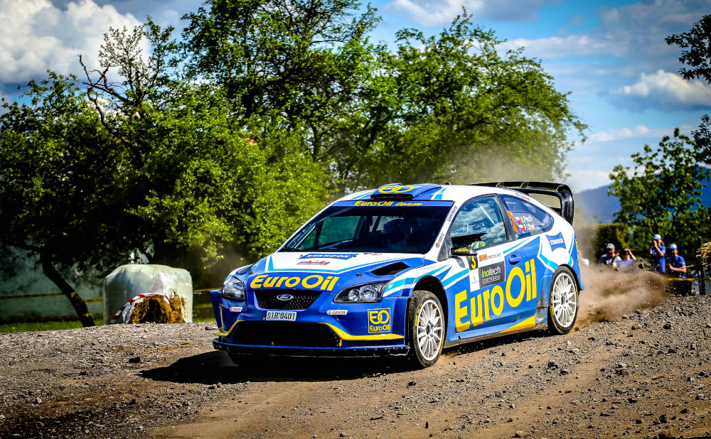 V noci před startem vydatně zapršelo a i v pátek během dne sem tam nějaká přeháňka přešla. Takže některé úseky byly zcela suché, ale v lesích zůstávalo vlhko. Proto jsme si s sebou vezli dvě měkké pneumatiky, které jsme na auto chtěli přezout před nejmokřejší RZ. Jenže při výměně pneu jsem špatně použil zvedák, který se mně v ruce rozpadl na několik kusů. Navíc jsem při tom zjistil, že jedno kolo je určitě nutné vyměnit, protože mělo poškozený disk. Bez heveru jsme si museli pomoci vedle ležící dopravní značkou a za podpory kamarádských posádek, především Karla Trojana, se nám podařilo kolo vyměnit. Byla z toho ale 10s penalizace za pozdní příjezd do časové kontroly,“ popisuje zdržení Pech.